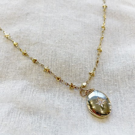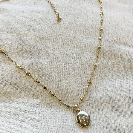 The medallion is engraved with a star with a mini zircon, this medallion opens in order to slide a photo, a souvenir...